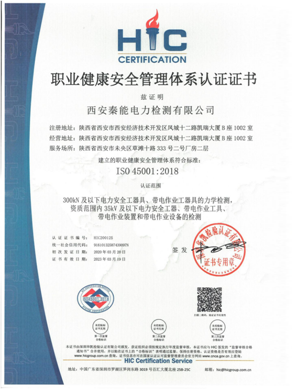 職業(yè)健康安全管理體系認(rèn)證證書